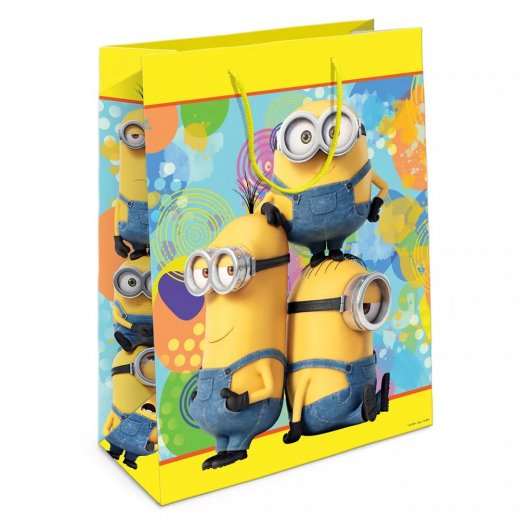 Пакет подарочный Гадкий Я – сможет стать отличным дополнением к презенту. Данный пакет декорирован красочным принтом с изображением любимых персонажей знаменитого мультфильма, которые обязательно поднимут настроение имениннику, а подарок станет самым запоминающимся и особенным. Он изготовлен из прочной бумаги и имеет две ручки, выполненные из текстиля. Подарки не обязательно делать только по важным поводам. Дарите их спонтанно, без причины, просто для души, ведь главное в этом процессе — удовольствие! Прочная ламинированная бумага с атласными ручками и уникальный дизайн делают его идеальным. Положите в него конфеты или игрушки, и ваш подарок не затеряется среди других.