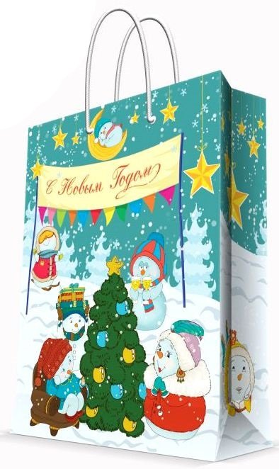 Пакет с веселым изображением снеговиков и атрибутов нового года - можно использовать как небольшой презент или как красивую упаковку под непосредственный подарок. Любой подарок начинается с упаковки. Что может быть трогательнее и волшебнее, чем ритуал разворачивания полученного презента. И именно оригинальная, со вкусом выбранная упаковка выделит ваш подарок из массы других.