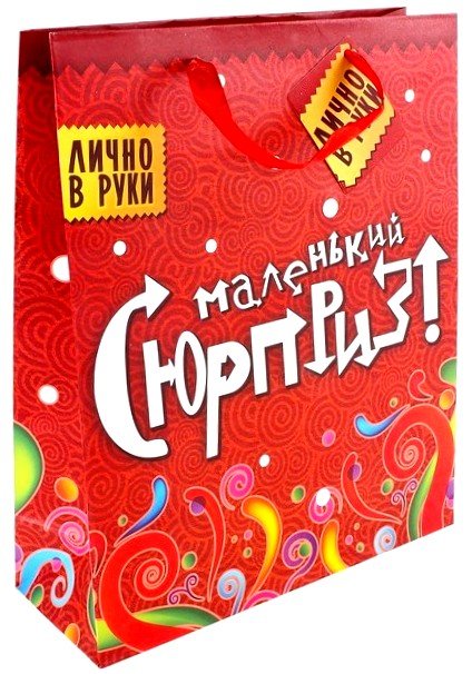 Пакет подарочный Маленький сюрприз – может сам выступить в роли небольшого подарка или замечательной упаковкой под непосредственный подарок. Любой подарок начинается с упаковки. Что может быть трогательнее и волшебнее, чем ритуал разворачивания полученного презента. И именно оригинальная, со вкусом выбранная упаковка выделит ваш подарок из массы других.