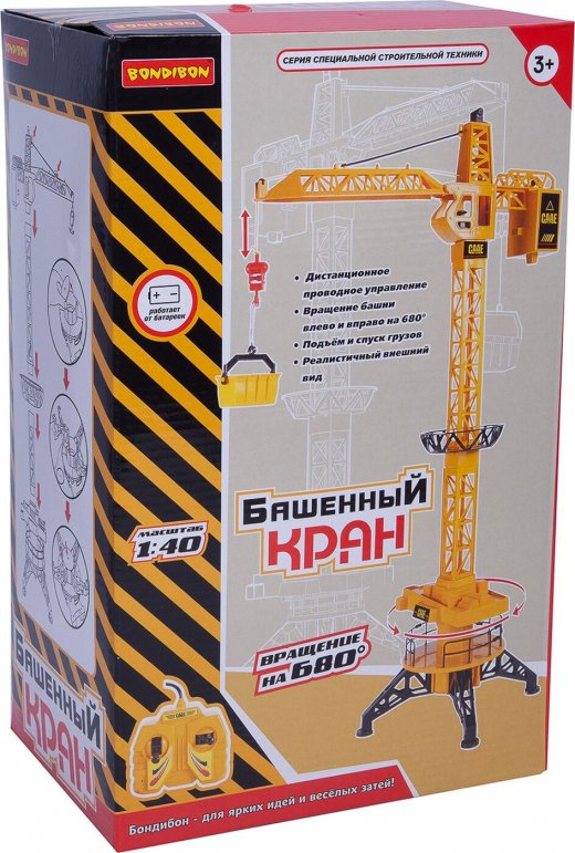 Башенный кран Bondibon на пульте управления имеет очень реалистичный дизайн.