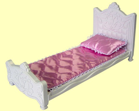 как у Барби, Штеффи или Дефы Люси. Высокое изголовье кровати с резным