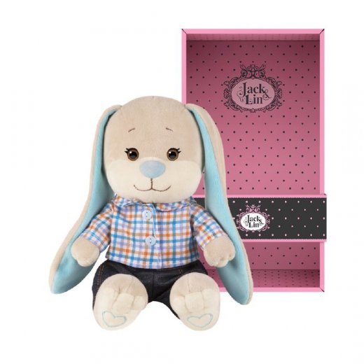 Знакомьтесь: Зайчик Жак - искатель приключений. Сегодня он собирается на прогулку в соседний лес. Для этого он надел клетчатую рубашку и удобные джинсы. В такой одежде можно смело лезть на самое высокое дерево или играть в догонялки с белками. С ним весело играть, а чтобы улыбнуться, достаточно посмотреть на безмятежный вид зайчонка и нежно-голубые ушки и носик.