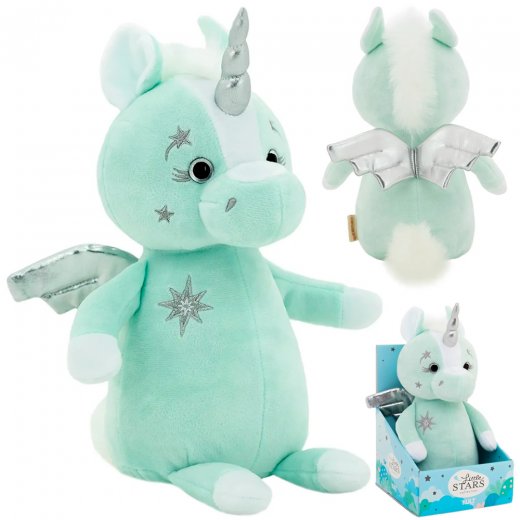 Блестящие выразительные глаза, приятный мятный оттенок, аккуратная серебристая вышивка, яркая подарочная коробка - всё это делает единорога Юни прекрасным подарком.