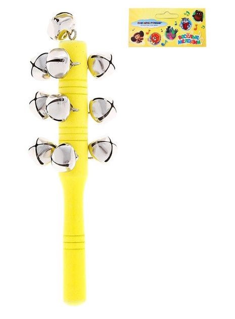 "Погремушка с бубенцами Союзмультфильм" является одним из видов погремушек и трещоток, звук появляется после ее встряхивания. Тонкие мелодичные звуки приведут в восторг малыша! Это почти настоящий музыкальный инструмент. Яркие цвета музыкальной игрушки привлекают внимание. Звонкие бубенцы крепятся к деревянной ручке желтого цвета. Даже самые маленькие с удовольствием будут звенеть этой игрушкой. Без сомнения, эта игрушка очень понравится вашему ребенку! Игрушка сделана из натуральной древесины, гладко отшлифована, не имеет сучков, заусениц или заноз.