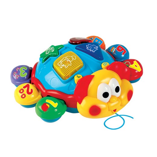 Игрушка-каталка "Говорящий жук" способствует зрительному восприятию, слуха, мелкой моторики, развивает концентрацию внимания, помогает изучать буквы, цифры, формы и цвета.Рекомендуемый возраст: от 1,5 лет