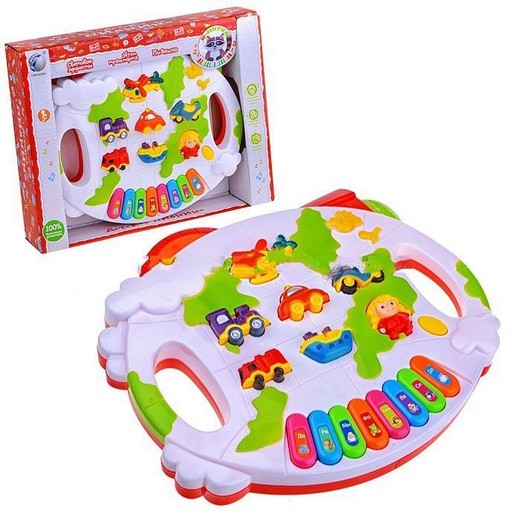 "Пианино Е-нотка на батарейках"- это увлекательная игрушка с различными звуковыми и световыми эффектами. Пианино содержит в себе одну октаву из 8 клавиш. Нажатие на клавишу сопровождается звуковым и световым эффектами. Игрушка оформлена в виде географической карты, на которой изображены транспортные средства передвижения и девочка. Они, как и клавиши, выполняют роль кнопок. При нажатии на одну из этих кнопок воспроизводится характерный звук соответствующего транспортного средства. Кроме того, игрушка задает вопросы для проверки полученных знаний. По бокам у игрушки имеются ручки для удержания. "Пианино Е-нотка на батарейках" выполнено из современных и гипоаллергенных материалов, безопасных для вашего малыша.