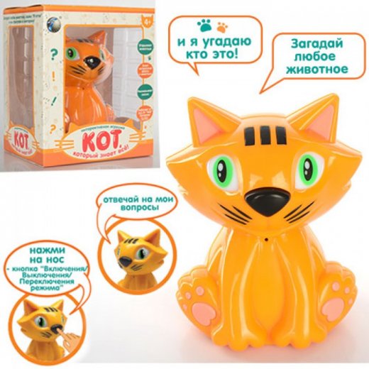Игрушка "Кот, который знает все" – это увлекательная интерактивная игрушка, способная угадать до 129-ти животных, рассказать 24-е интересных фактов о животных и рассказать четыре сказки. Просто отвечай на его вопросы, и он прочитает "Твои мысли". Ребенок будет счастлив иметь дома самого что не на есть ученого кота, с которым ему будет весело каждый день узнавать что-то новое.