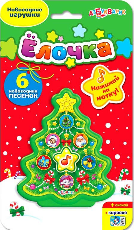 Музыкальная ёлочка с популярными зимними песенками – отличный подарок к Новому году! Нажимай на нотку – слушай, пой, води хоровод с друзьями! В игрушке записано 6 песенок: "В лесу родилась ёлочка", "Расскажи, Снегурочка", "Рождественская песенка", "Белые снежинки", "Песенка Умки", "Мы игрушки смастерили"! Собери всю серию «Новогодние игрушки» - «Ёлочка», «Дед Мороз» и «Снегурочка». А также скачивай музыкальную книжку "Караоке" по QR-коду на упаковке.