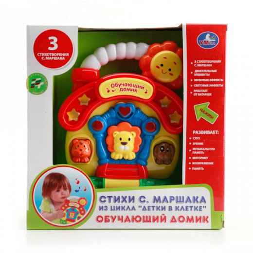 Игрушка "Обучающий домик Стихи С.Маршака" тренирует память, развивает моторику пальцев, зрение и слух.
