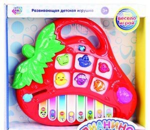"Пианино знаний"- это увлекательная игрушка с различными звуковыми и световыми эффектами. Пианино познакомит детей с разными видами животных, их названиями, научит различать их по голосу, а также обучит 7 музыкальным нотам. Кроме того, игрушка задает вопросы для проверки полученных знаний. Корпус ее выполнен в виде красочной ягодки с удобной ручкой. Внизу расположена клавиатура с изображениями мордочек разных обитателей природы и обозначением нот. В верхней части имеются 6 кнопок в форме животных (лягушка, птичка, обезьянка, уточка, овечка, рыбка), голоса и названия которых ребенок узнает в процессе игры.