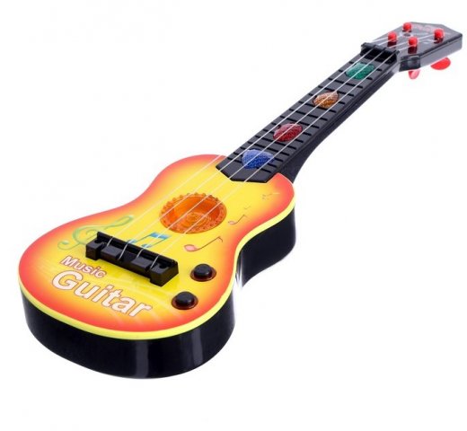 Занятия с игрушечной гитарой развивают у ребёнка визуальное, музыкальное восприятие, воображение и мелкую моторику рук.