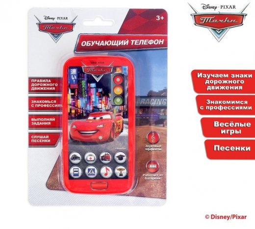 Обучающий телефон — интерактивная игрушка, которая познакомит малыша со знаками дорожного движения, профессиями, цифрами и буквами, развлечёт играми и песенками. А помогут в этом персонажи мультфильма «Тачки». Ведь узнавать новое вместе с любимыми героями всегда интереснее!