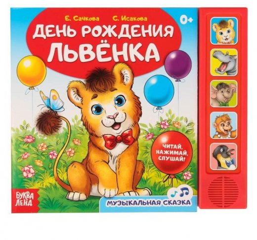 Купить Книжка с музыкальным чипом День рождения львенка в Новосибирске Вы можете в магазине развивающих и настольных игр "Игры Почемучек".