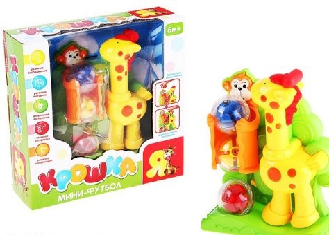 Игра "Мини-футбол Крошка Я"- это яркая и интересная игрушка, которая порадует вашего малыша и подарит ему множество позитивных эмоций. Принцип игры: шарик необходимо опустить в лапки обезьяны, затем нажать на жирафа и шарик вылетит. Подарите малышу море радости и восторга. Игрушка изготовлена из высококачественного и гипоаллергенного пластика.