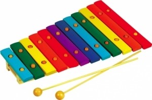 Ксилофон представляет собой ударный музыкальный инструмент, который состоит из основания и укрепленного на нем набора разноцветных пластинок. Для того, чтобы ксилофон зазвучал, по пластинкам надо ударять деревянными палочками. Извлекая звуки, ребенок пытается сочетать их в мелодию, в определенные ритмы. У деревянного ксилофона очень приятный, чистый, негромкий звук.