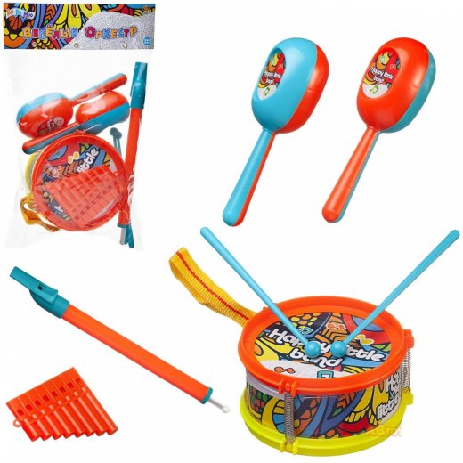 - Набор музыкальных инструментов маракасы, барабан, дудка, губная гармошка