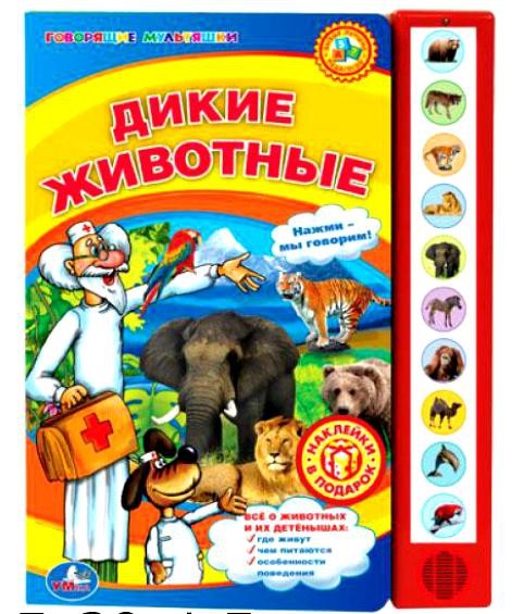 Книга "Дикие животные" расскажет малышам все о животных и их детенышах, а именно, где они живут, чем питаются и про их особенности поведения. Кроме этого эта книга откроет детям новый формат чтения книг. Ведь кроме интересных историй и красивейших иллюстраций книга имеет 10 кнопок, которые "говорят" голосами известных актеров.