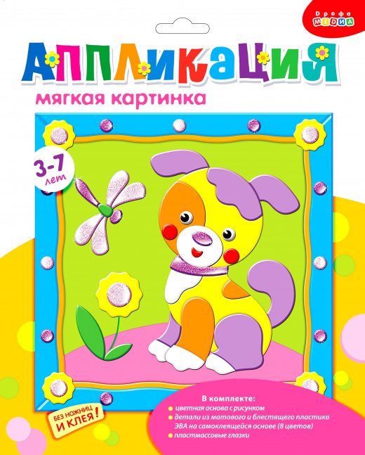 Аппликация Мягкая картинка – это весьма интересный и увлекательный подарок для юного любителя творчества. Набор позволяет вашему маленькому исследователю проявить себя и создать удивительную поделку. Яркие детали без клея и ножниц легко прикрепляются на картонную основу. Пусть ваш начинающий мастер подарит разноцветную шерстку милому щенку!