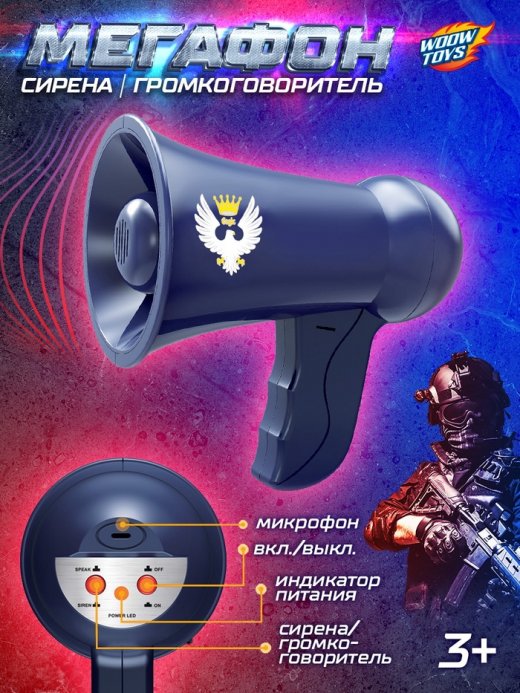 Рупор сделает голос громче, и все обратят на малыша внимание. С таким изделием ребёнок придумает множество сюжетов и ситуаций. Мегафон обладает функцией сирены, что делает игру увлекательнее.