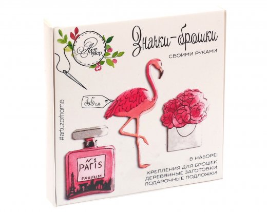 Состав набора: крепления для брошей, деревянные заготовки, подарочные подложки.