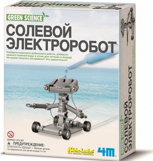 Набор 4M "Солевой электроробот" по-настоящему удивит ребенка, который, очень может быть, и знал о существовании разнообразных роботов, но вот с их собратом на солевой основе вряд ли когда-либо встречался. И конечно, ничего не знает о принципах работы таких чудо-устройств!