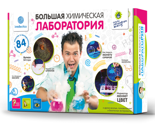 Набор для опытов "Большая химическая лаборатория" включает более 80 занимательных опытов для изучения химических свойств различных веществ. В состав набора входит более 20 реактивов, лабораторная посуда и оборудование, а так же красочная инструкция с подробным описанием проведения всех опытов. Ребенок узнает, как получить цветное пламя и невидимые чернила, как создать настоящий вулкан и серебряное зеркало, но главное - он поймет, как все это происходит.