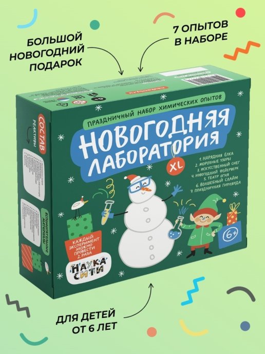 Купить Подарочный набор "Новогодняя лаборатория XL" в Новосибирске Вы можете в магазине развивающих и настольных игр "Игры Почемучек".