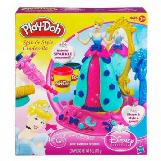Набор пластилина "Золушка" от Плей-До включает в себя: специальную крутящуюся платформу с зеркальцем, на которую ставится фигурка Золушки; 3 аксессуара для создания украшений на платье; 3 баночки пластилина Play-Doh (1 - классические и 2 - с блестящим пластилином Плей-До). Помимо этого, на основании платформы имеются углубления-формочки, с помощью которых можно вылепить еще больше изящных украшений! Размер: 25,5 см на 22,5 см. Рекомендуемый возраст: от 3-х лет.