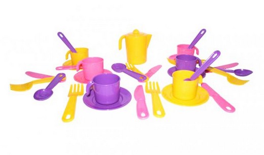 Состав набора: посудка из пластмассы на 6 персон в пакете. Рекомендуемый возраст: от 3-х лет.