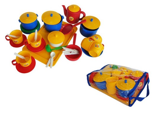ярком наборе посуды есть всё необходимое для маленькой хозяюшки.