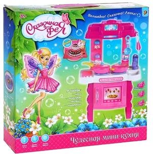 Состав набора: варочная панель с 2 конфорками, духовка, раковина с краном, сковорода с крышкой, кастрюлька с крышкой, венчик, нож, поварешка, емкости для специй.