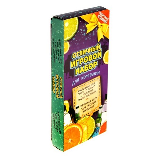 Настольная игра "Отличный игровой набор" включает в себя две игры, которые в свою очередь имеют свои любопытные вариации. Если у Вас намечается алкогольная вечеринка или Ваши друзья решили зайти в гости, то наверняка ничего лучше этой игры Вы не придумаете! Здесь Вы найдете рецепты лучших алкогольных коктейлей, простые расслабляющие игры, азартные игры на выполнение различных заданий. Открывайте коробку и начинайте веселье с непревзойденной настольной игрой "Отличный игровой набор"!