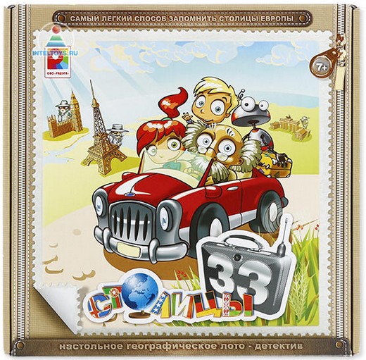 Вашему ребенку сложно в школе? у него трудности с географией, написанием сочинений, воображением? А может Вашему чаду просто интересно как можно больше узнать о мире и он все время задает вопросы, касающиеся его устройства а в комнате держит глобус? Настольная игра "33 столицы" станет той игрой, которая поможет при любом раскладе. Отправьтесь в путешествие, раскройте преступление века и станьте лучшим сыщиком современности! Игра развивает глазомер, сообразительность, кругозор, воображение, творческие способности, интеллект, стратегическое и тактическое мышление, память, ребенок узнает столицы и их месторасположение, ориентируется в пространстве и в мире. Настольная игра "33 столицы" это игра для всех, кто без ума от приключений и детективных расследований! В путь!