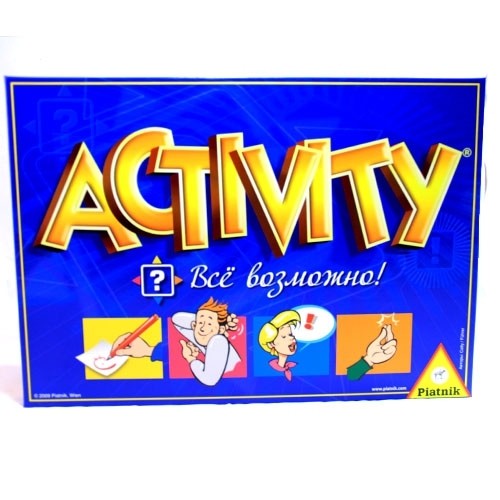 Вашему ребенку сложно выходить к доске, выступать перед людьми и вообще решительно заявляться в жизни? С настольной игрой "Activity/Активити Все возможно!" Вы поможете ему решить все эти проблемы! В игре Ваш ребенок будет неминуемо развиваться, станет более устойчивым и, в конце концов, в веселом и непринужденном взаимодействии с другими людьми сможет понять и принять себя.