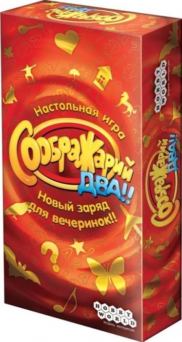Игра настольная Соображарий Два!! - увлекательный способ провести вечер в компании своих близких и друзей! Продолжение легендарной игры порадует, как новичков, так и своих поклонников большим набором интересных заданий. Сколько слов в рифму вы назовёте за минуту? Кто первым вспомнит денежную единицу на букву «Ф»? Что начинается с буквы «Ч» или «З» и при этом кусается? Быстрее всех подбирайте подходящие слова, проявляйте смекалку и находчивость, и победа в соображательном состязании достанется вам!
