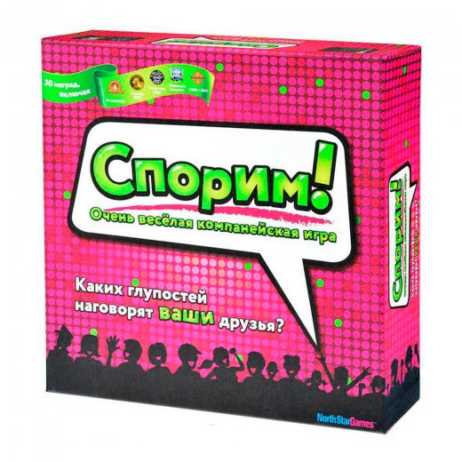Любите азартные игры и не прочь развлечься, показав весь свой талант спорщика? Значит настольная игра "Спорим?" для Вас! Делайте ставки на победу или поражение Ваших соперников в выполнении каверзных заданий, получайте за верные ставки очки и вырывайтесь вперед. Настольная игра "Спорим?" отличный способ показать всем вокруг какой вы проницательный и удачливый человек! Стоит только запастись везением и логикой, а там как карта ляжет! Вперед к приключениям, страстям и азарту с легендарной настольной игрой "Спорим?"!
