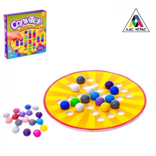 Настольная игра "Солитер" - это приятные лакированные шарики, игровое поле с выемками и дух традиционных настольных игр в каждом ходе. Игрокам предстоит спасти свой шарик в центре поля, двигаясь и перепрыгивая чужие шарики по ходу игры.