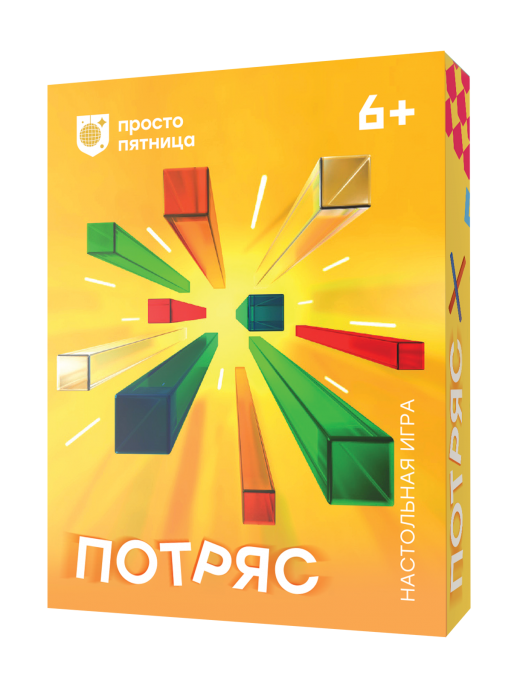 Игра "Потряс" проверит вашу внимательность! В начале игры выкладываются 12 карточек с комбинациями. В свой ход игрок берёт 12 разноцветных палочек и, потряся в кулаке, аккуратно бросает на стол. Далее игроки начинают искать соответствия между комбинациями на карточках и положением палочек на столе. Участник, верно определивший соответствие, забирает себе карточку комбинации – так продолжается до тех пор, пока игроки не сойдутся во мнении, что соответствий больше нет. Следом выкладка карточек вновь дополняется до 12, а палочки бросает следующий игрок. Победит тот, кто наберёт больше всех карточек.