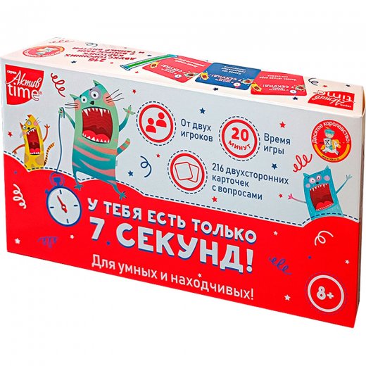 Увлекательная настольная игра для большой компании «У тебя есть только 7 секунд!» развивает интеллект, мышление, быстроту реакции и дух соперничества.