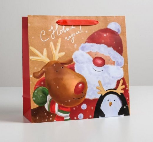 - Пакет подарочный Веселая компания С Новым годом 30 х30 х12 м