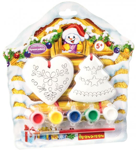 Состав набора: фигурка елочки, фигурка сердца, 5 красок, кисточка.