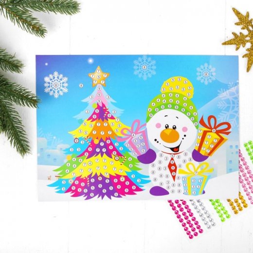 Купить Аппликацию круглыми стразами «Снеговик с ёлкой» в Новосибирске Вы можете в магазине развивающих и настольных игр "Игры Почемучек"