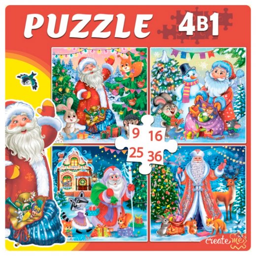 Пазлы дедушка Мороз с подарками 9-16-25-36 дет