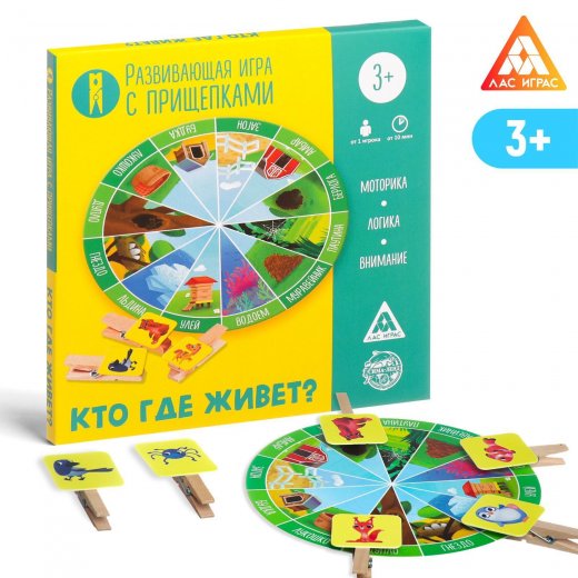 Купить Развивающую игру Кто где живёт? с прищепками в Новосибирске Вы можете в магазине настольных и развивающих игр "Игры Почемучек"