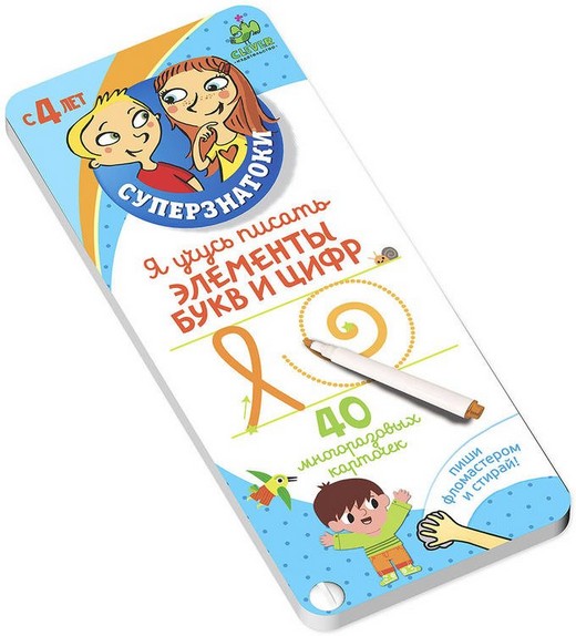 Купить Суперзнатоки Я учусь писать элементы букв и цифр 40 многоразовых карточек в Новосибирске Вы можете в магазине настольных и развивающих игр «Игры Почемучек».