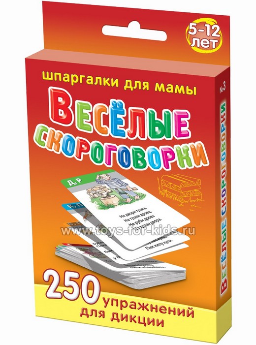 Веселые скороговорки (серия шпаргалки для мамы) – это увлекательные развивающие игры и занятия для детей разных возрастов, напечатанные на отдельных карточках. Благодаря своему компактному размеру они легко уберутся в мамину сумку и поэтому всегда будут под рукой в нужный момент!
