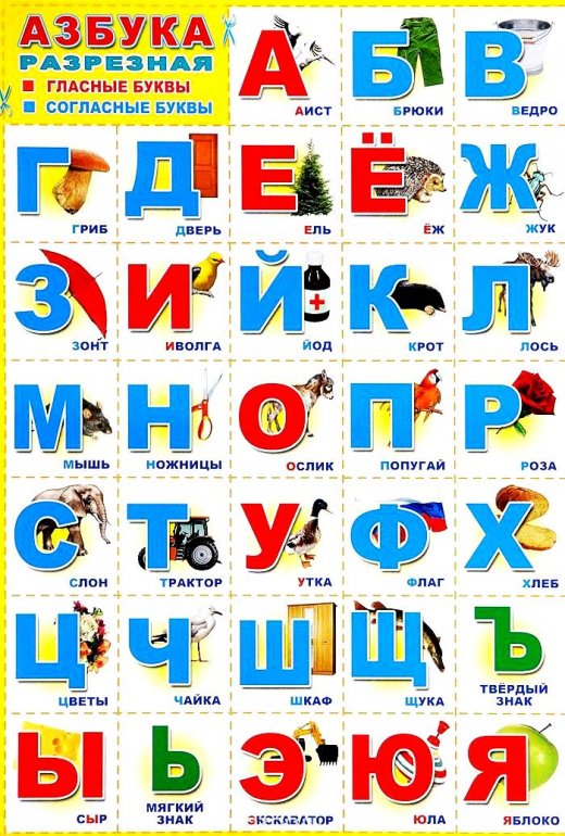 Плакат Азбука разрезная – представляет собой яркий и красочный плакат, плакат, который при желании можно разрезать и использовать как раздаточный материал. Плакат познакомит ребенка с буквами русского алфавита. Каждая буква имеет предметное изображение. Плакат также можно использовать для закрепления понятий о гласных и согласных буквах, так как их изображение имеет разный цвет. Плакат выполнен из мелованного картона и подойдет как для индивидуальных занятий, так и для работы в группе. Это один из лучших способов для маленького ребенка, в легкой игровой форме, выучить все буковки русского алфавита.