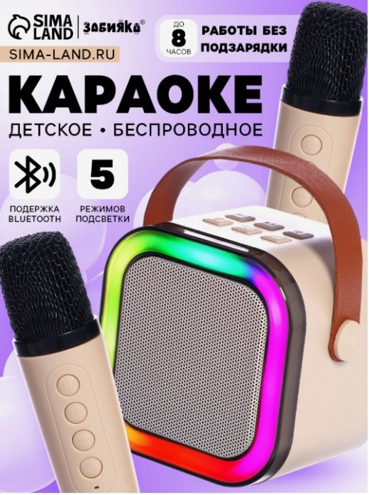 Детское караоке с двумя беспроводными микрофонами — это отличный выбор для весёлых семейных вечеров и праздников. Встроенные звуковые эффекты, подсветка и функция изменения голоса добавят разнообразия, а удобное подключение через Bluetooth, USB и AUX обеспечит универсальность.