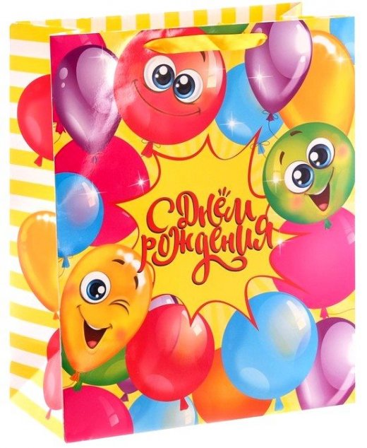 Бумажные пакеты — лидеры по популярности среди подарочной упаковки. Выполнен он в ярких и красочных тонах с изображением веселых воздушных шаров, а благодаря качественной печати рисунок не сотрётся и не выгорит и к тому же он достаточно прочен. Так что в дальнейшем его владелец может пользоваться им по прямому назначению, для походов в магазин и т.д.