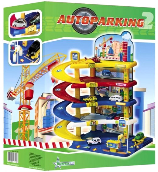 Гараж Автопаркинг 2 – позволит ребенку, увлекающемуся игрой в машинки, разместить все свои модели автомобилей в одном месте и не просто расставить их, а сопроводить это сюжетной игрой! Паркинг состоит из нескольких этажей; верхний этаж представляет собой вертолетную площадку, а внизу находятся автомойка и заправка. Стену парковки образовывает картон, на котором изображены рисунки с видами на город или на стоящие машины. Также в набор входит множество наклеек, которые помогут украсить парковку.